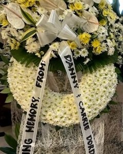 elegant yellow and white funeral standee